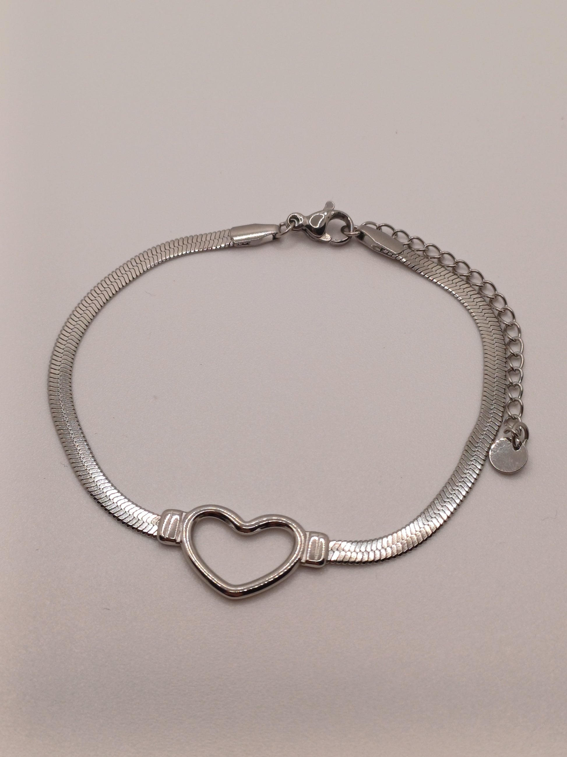 Bracciale snake in acciaio inossidabile silver con cuore