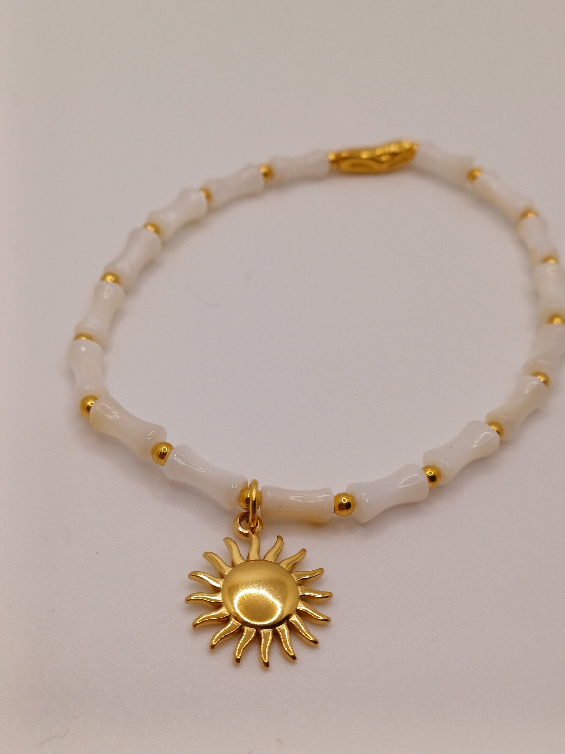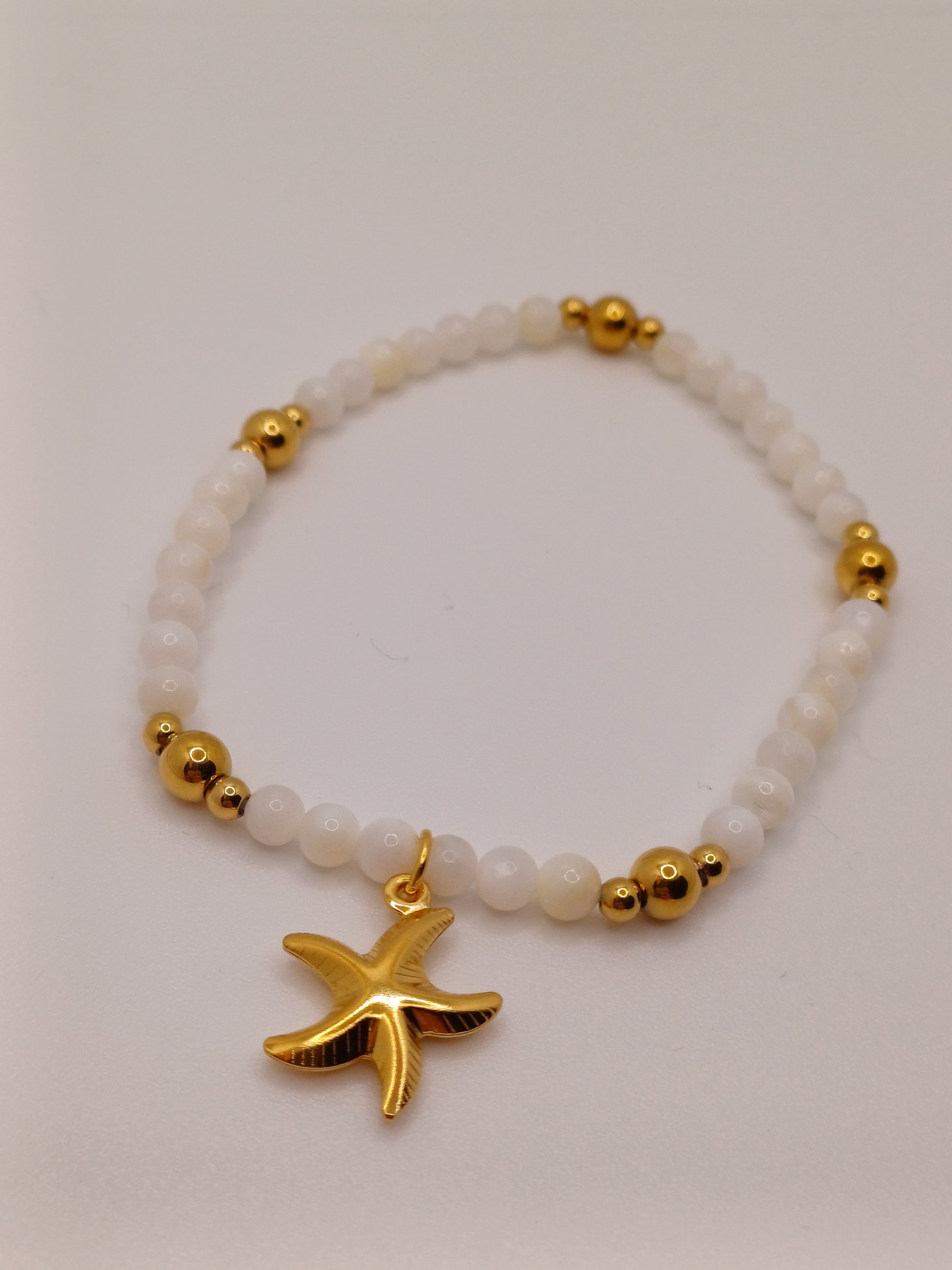 Set tre braccialetti in acciaio inossidabile gold con sole, stella marina, conchiglia