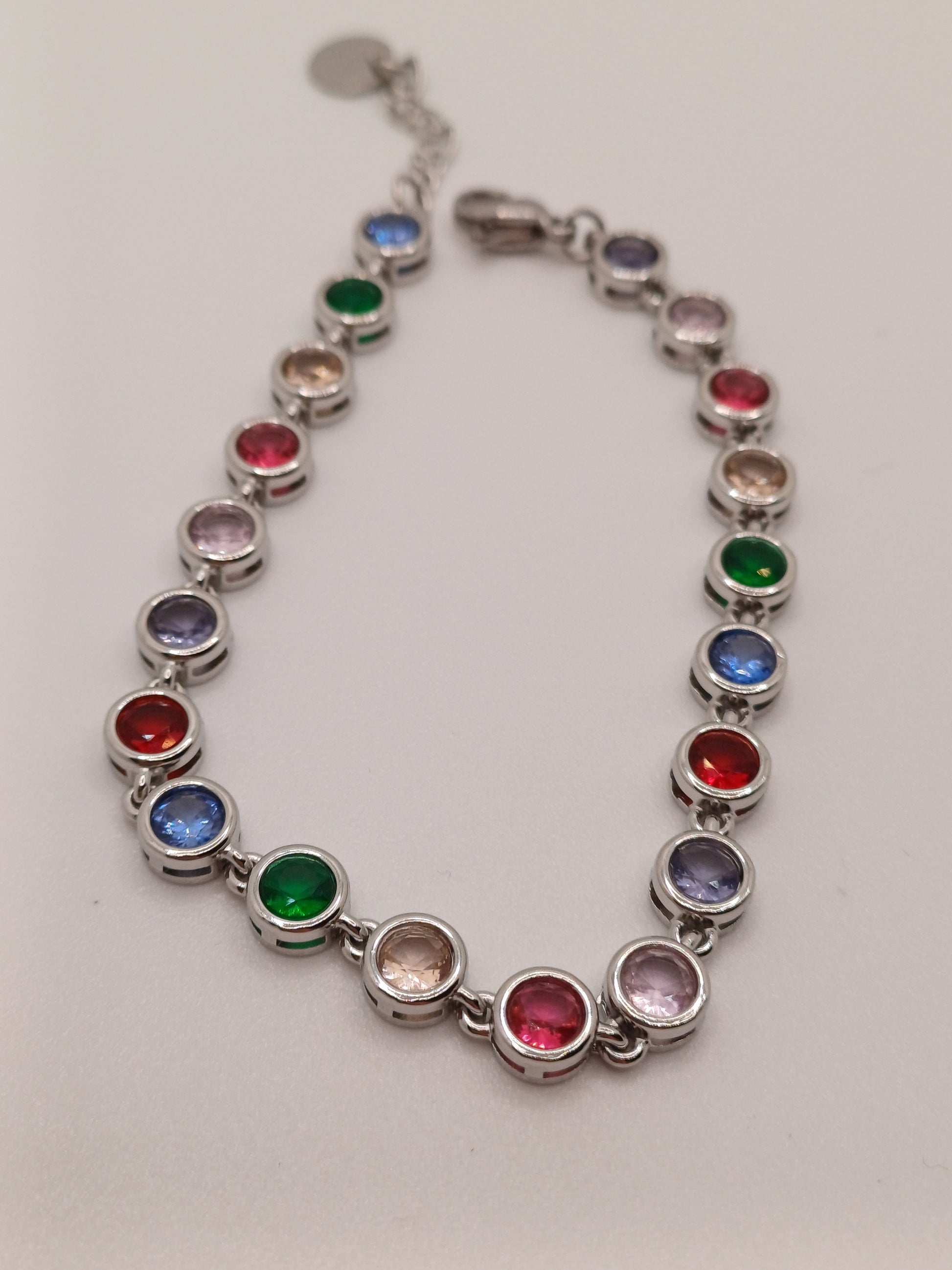 Braccialetto in acciaio inossidabile silver con zirconi arcobaleno