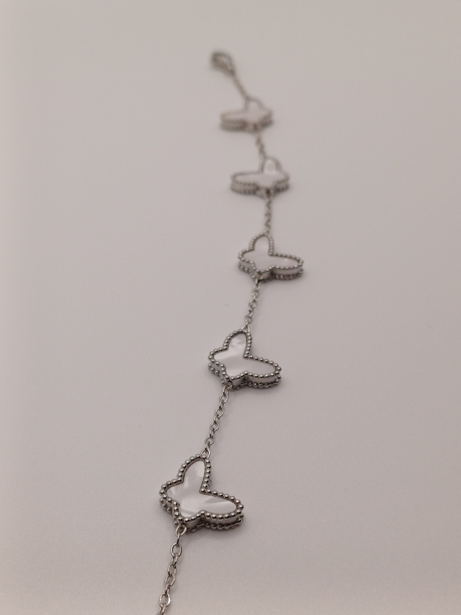 Bracciale in acciaio inossidabile argento con farfalle in madreperla bianca