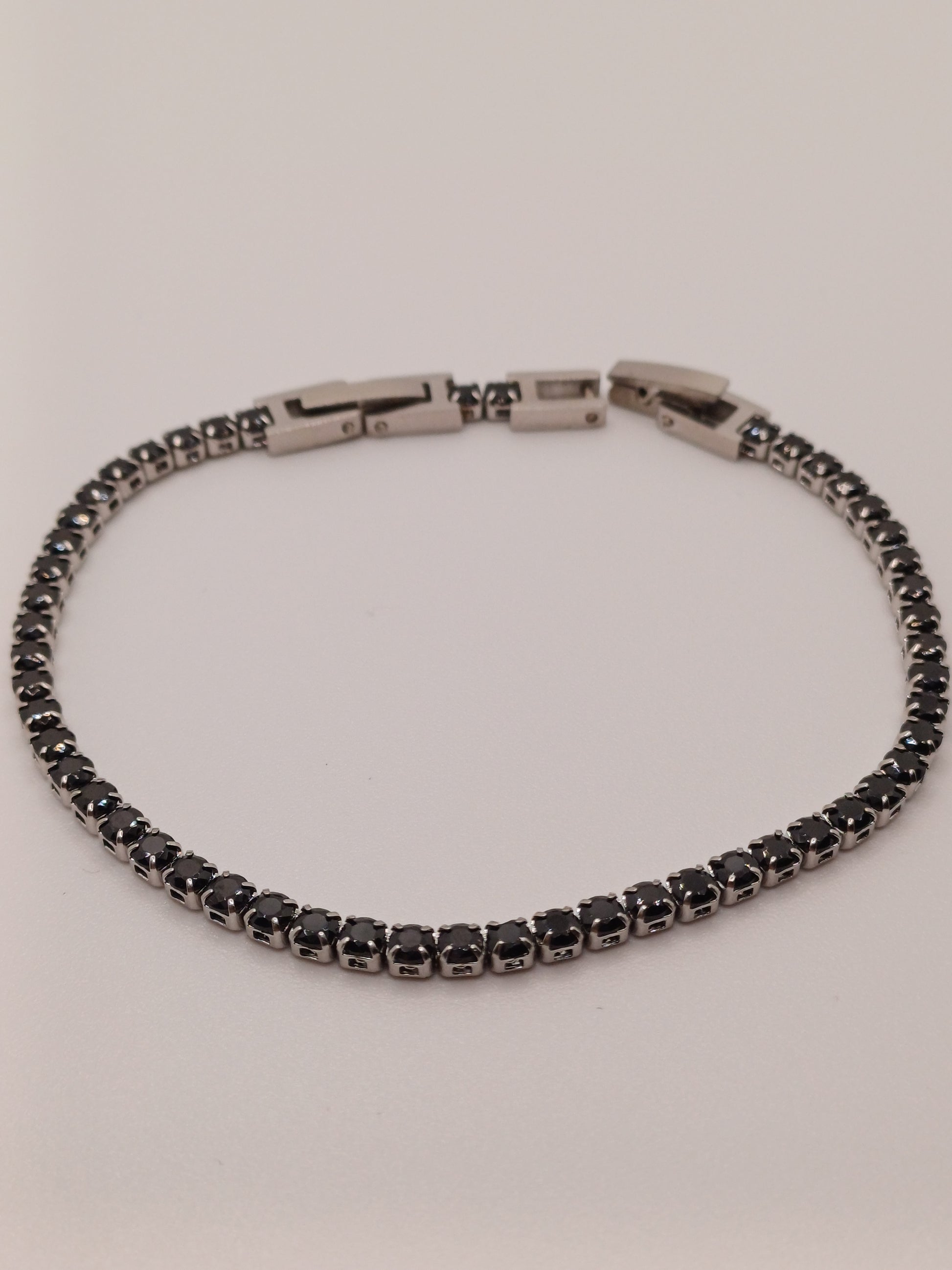 Braccialetto simil tennis in acciaio inossidabile nero medio