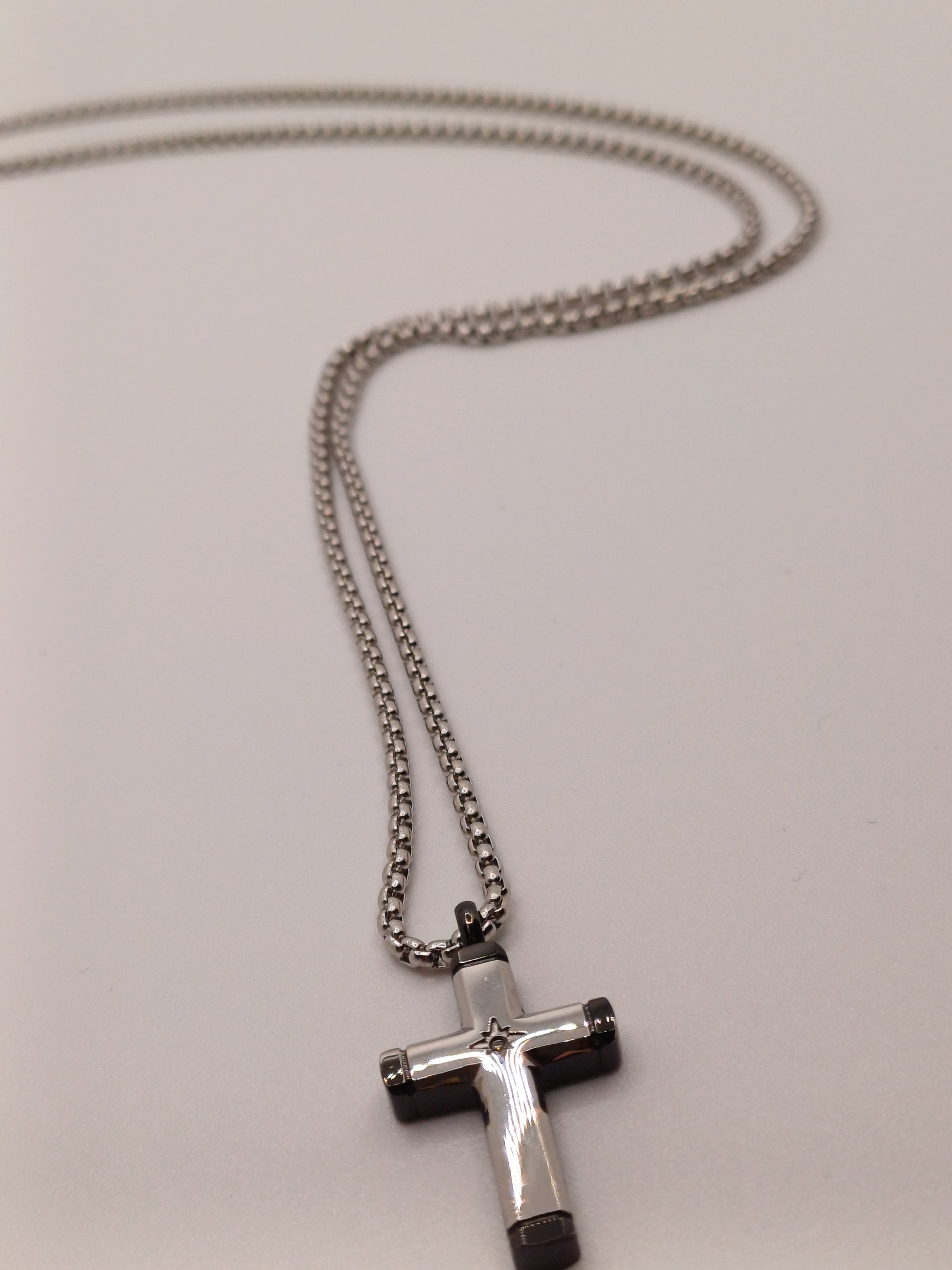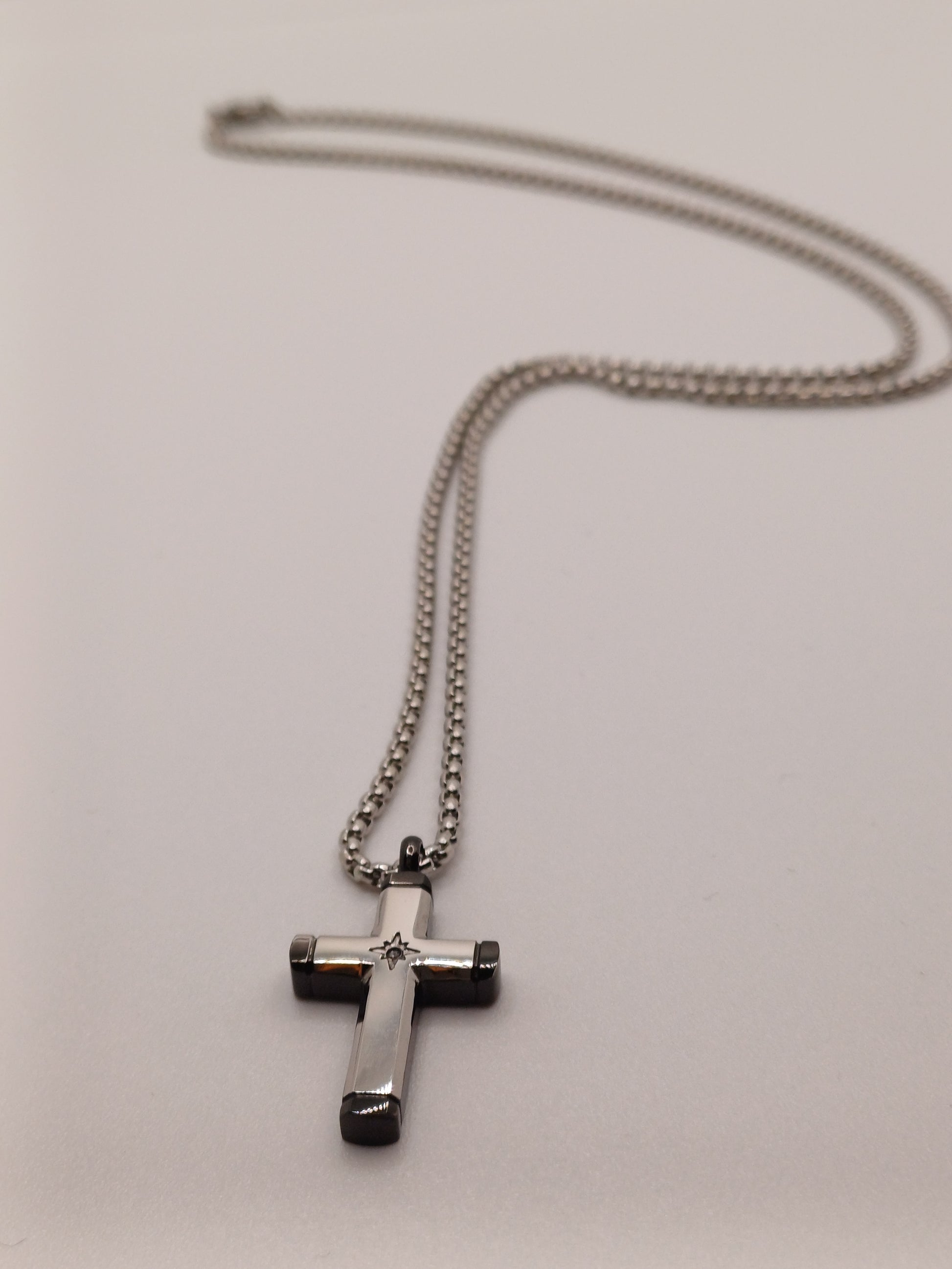 Collana in acciaio inossidabile silver con croce in dettagli neri
