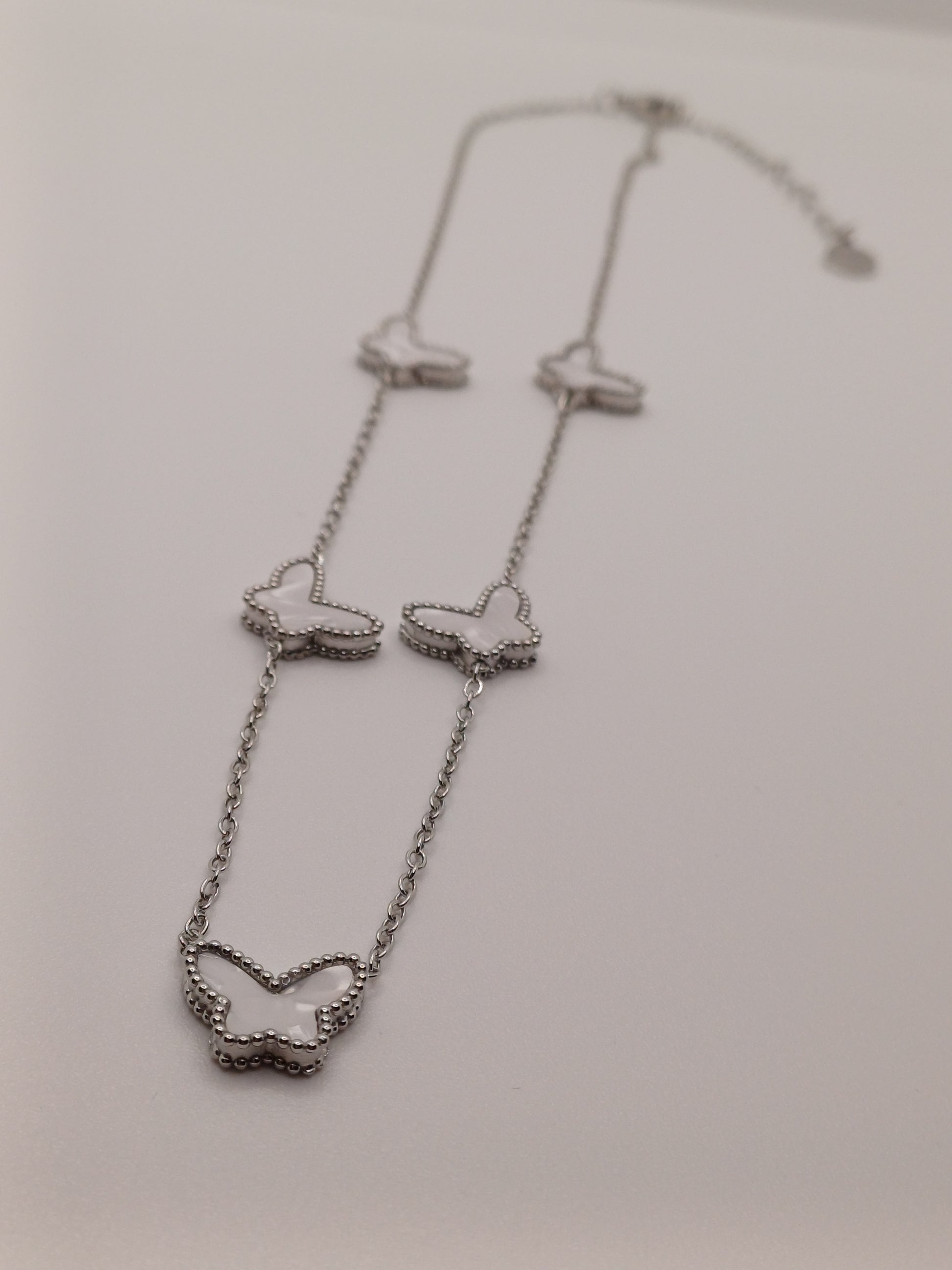 Collana in acciaio inossidabile silver con farfalle in madreperla bianca