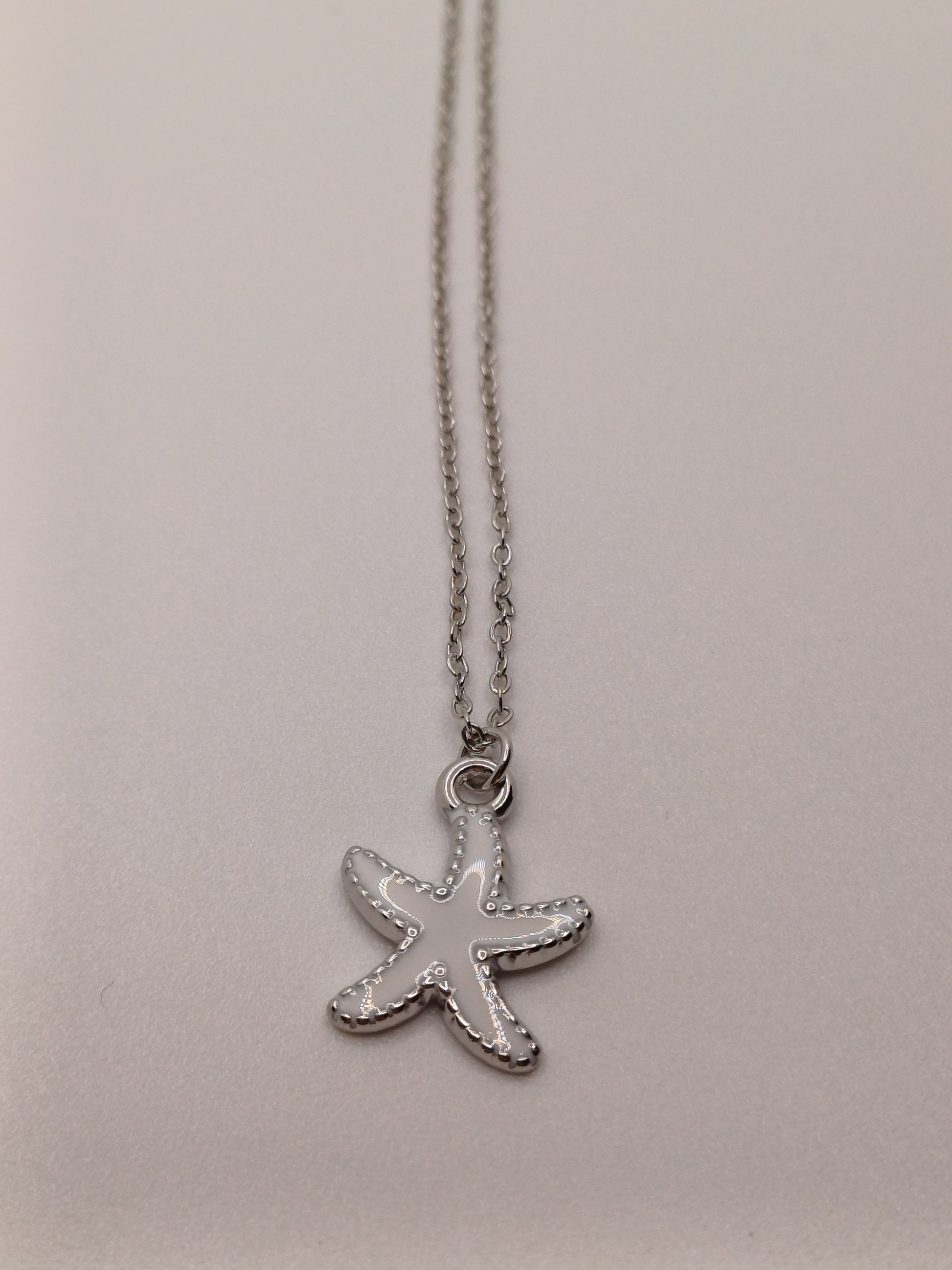 Collana in acciaio inossidabile con stella marina in madreperla bianca