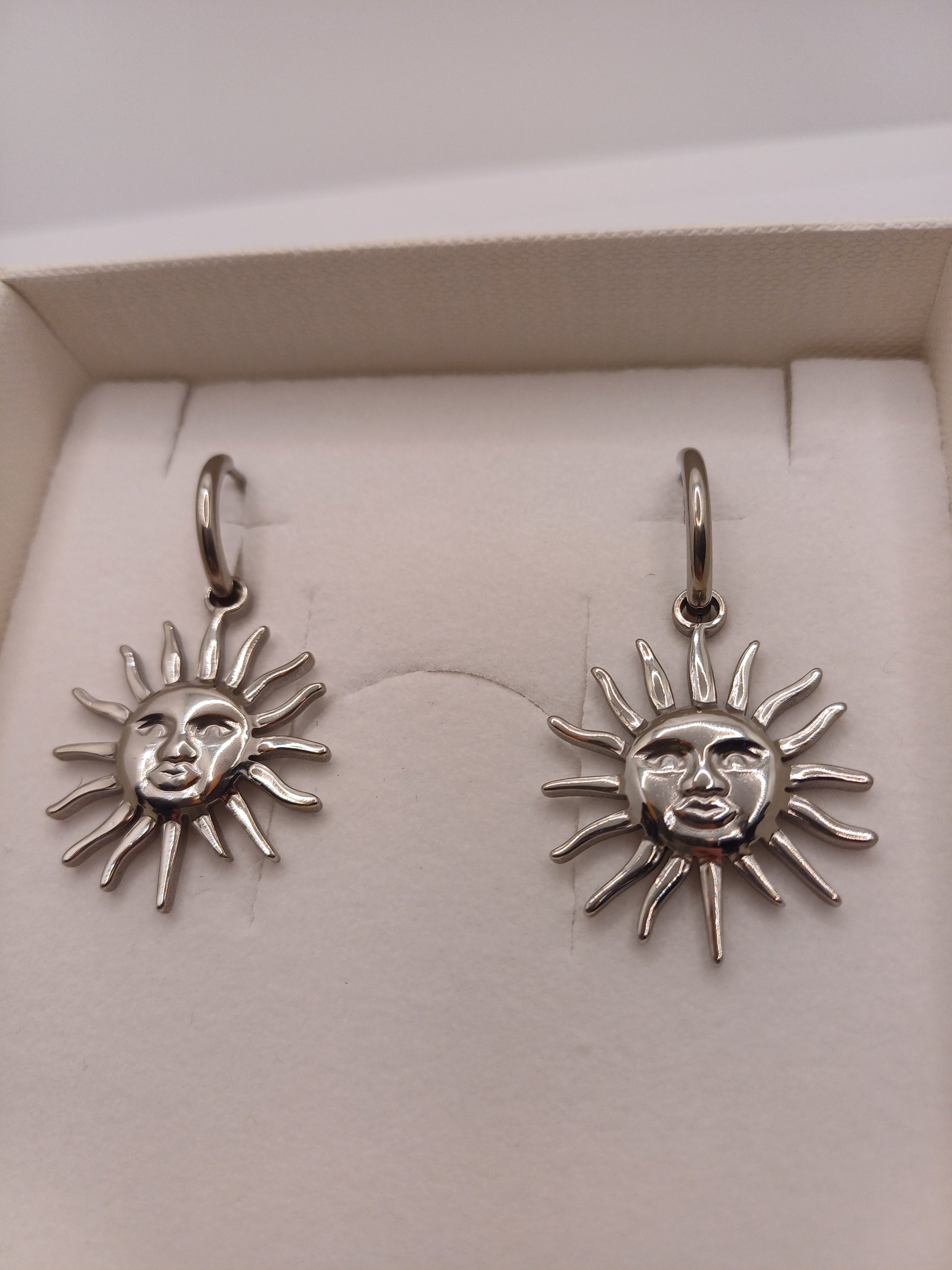 Orecchini cerchio in acciaio inossidabile argento con sole
