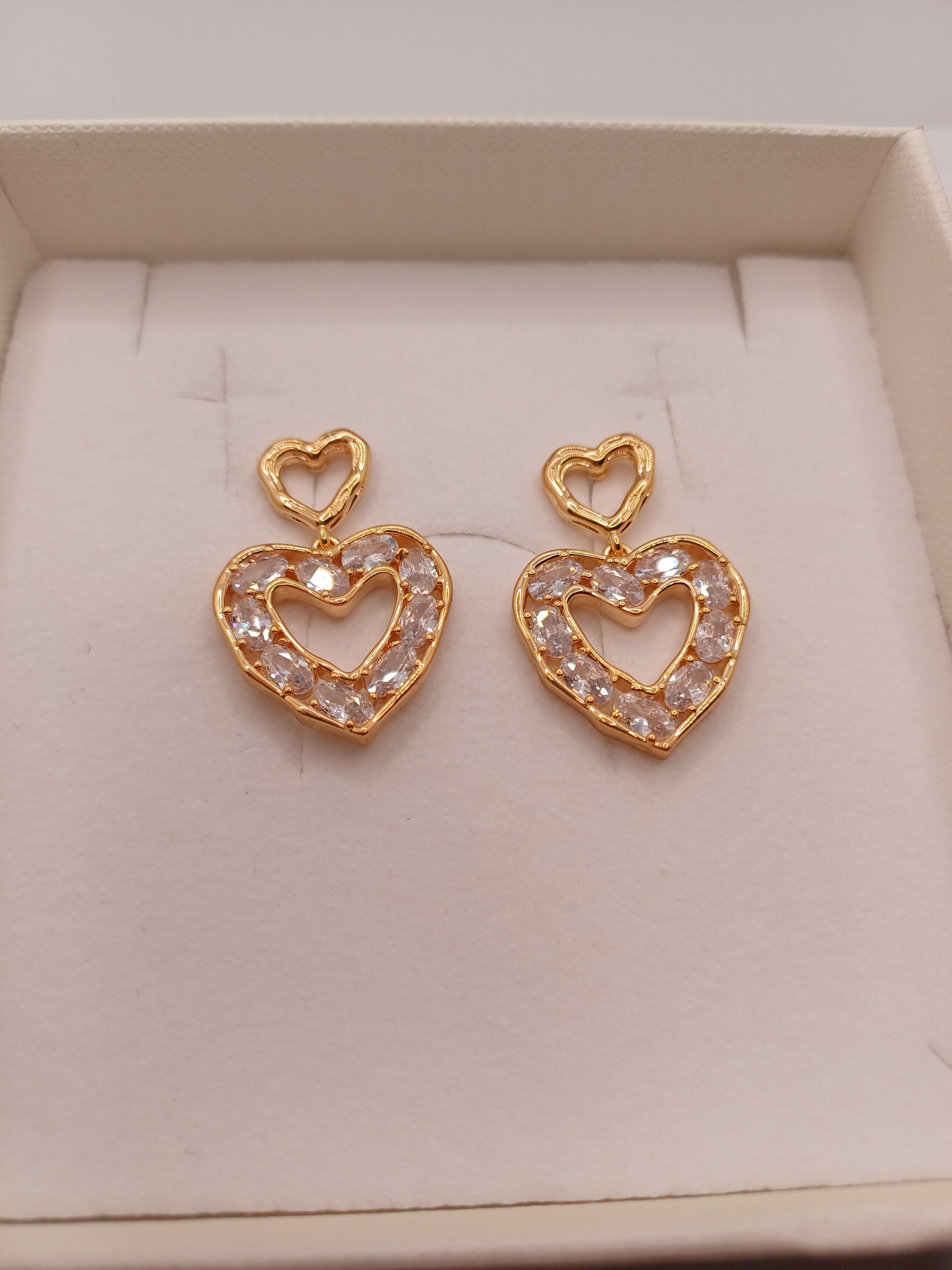 Orecchini in acciaio inossidabile gold con doppio cuore e brillantini